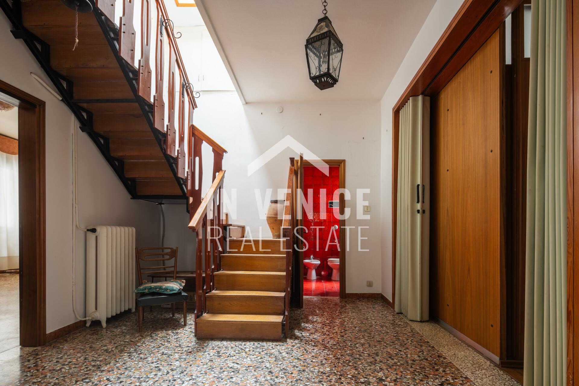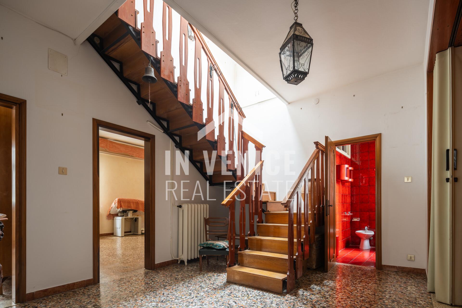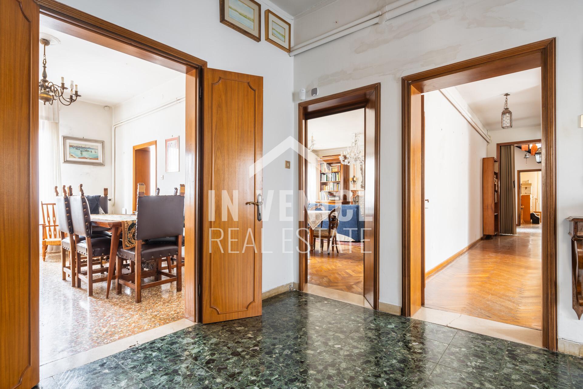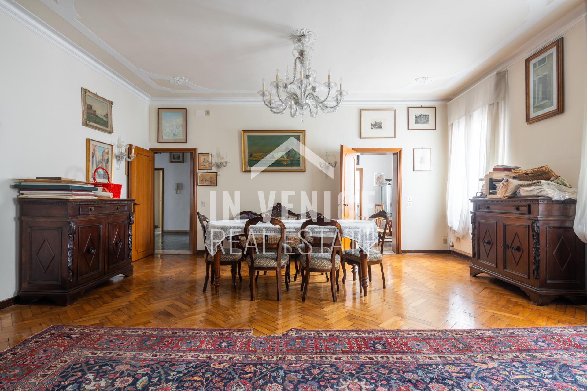 Proponiamo in esclusiva appartamento dietro Riva degli Schiavoni, appartamento su due livelli, all’ultimo piano ed unico al piano. La soluzione è un signorile appartamento dalle dimensioni generose, e con la particolarità di affacciare su quattro lati, che la rendono luminosa grazie alle numerose finestre. Entrando ci accoglie un ampia zona ingresso, che prosegue sulla sala da pranzo con cucina abitabile separata. Proseguendo troviamo una splendida zona living di 40 mq dov’è stato conservato il profilo in marmo d’epoca di un vecchio caminetto. Accanto al soggiorno si trova uno studio di 30 mq, soluzione ideale per unire i due ambienti. Al piano troviamo quattro camere, due bagni ed una lavanderia, mentre al piano sottotetto 3 camere ed un bagno. Completa questo appartamento un ALTANA(al momento da sistemare in quanto le assi in legno erano da sostituire), di 22 mq, dalla quale si può ammirare il Campanile di San Marco, i fuochi del Redentore, e tutti l’arte che lo circonda.