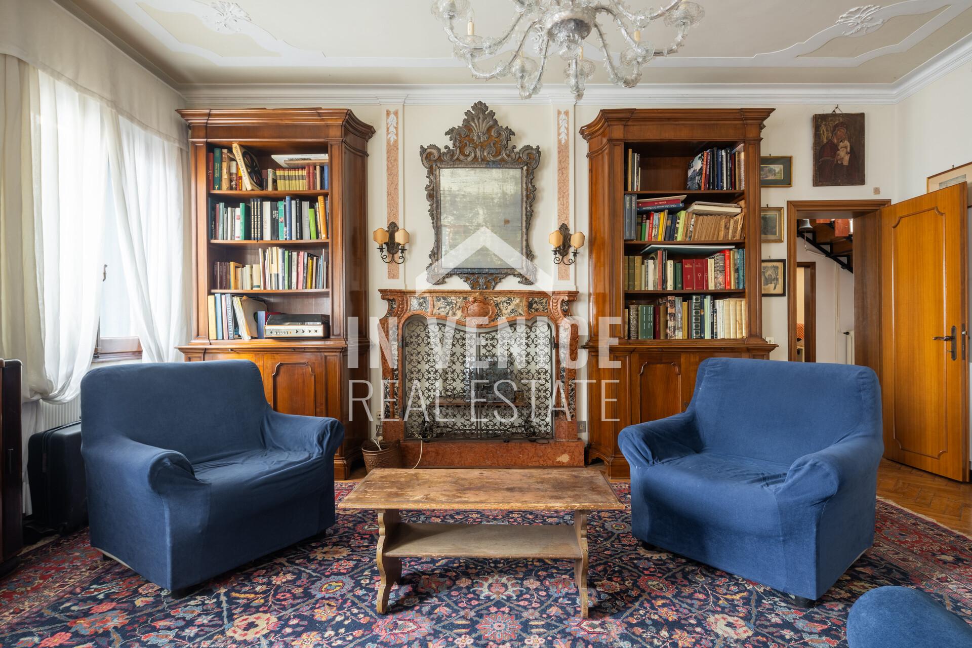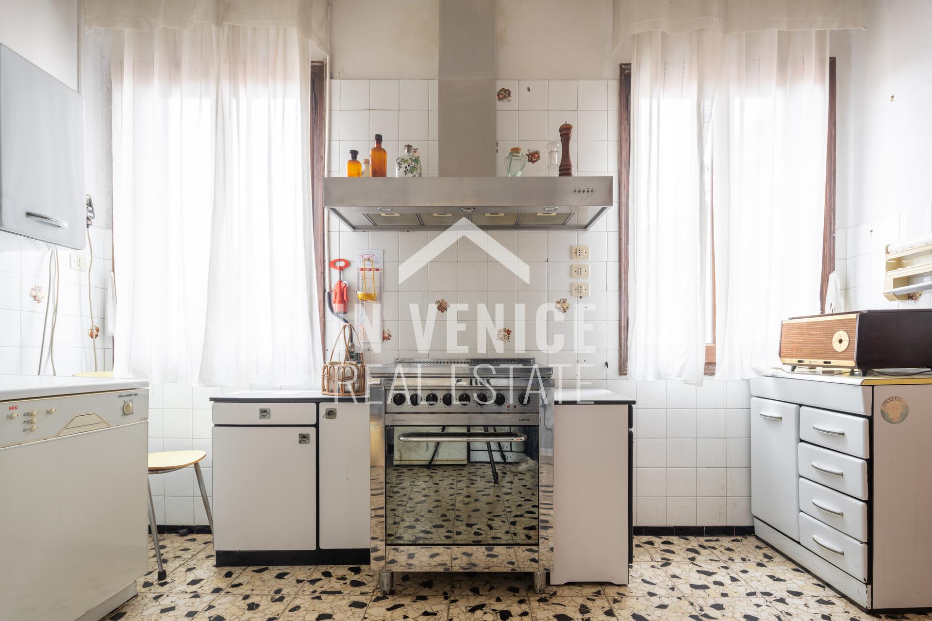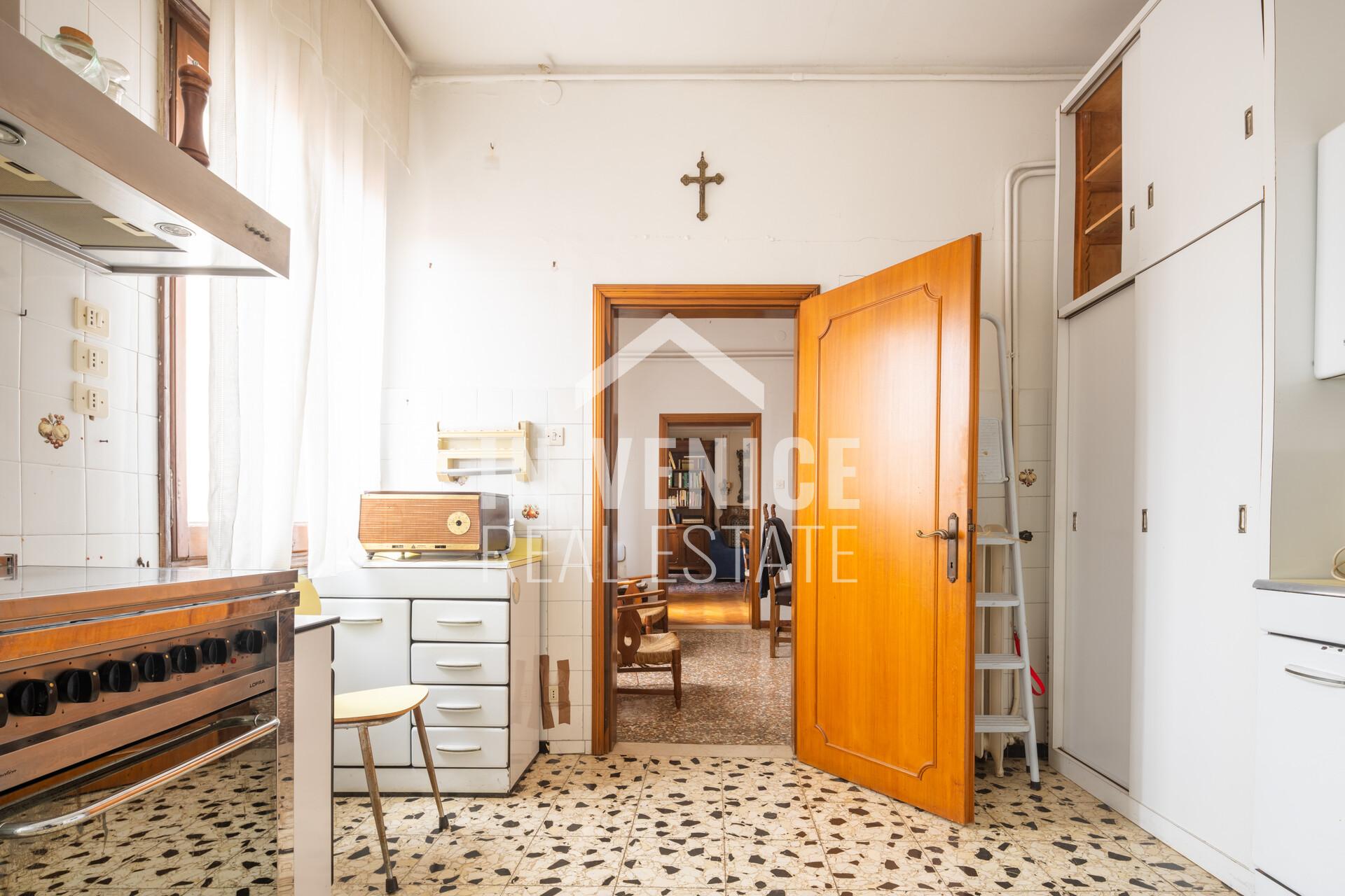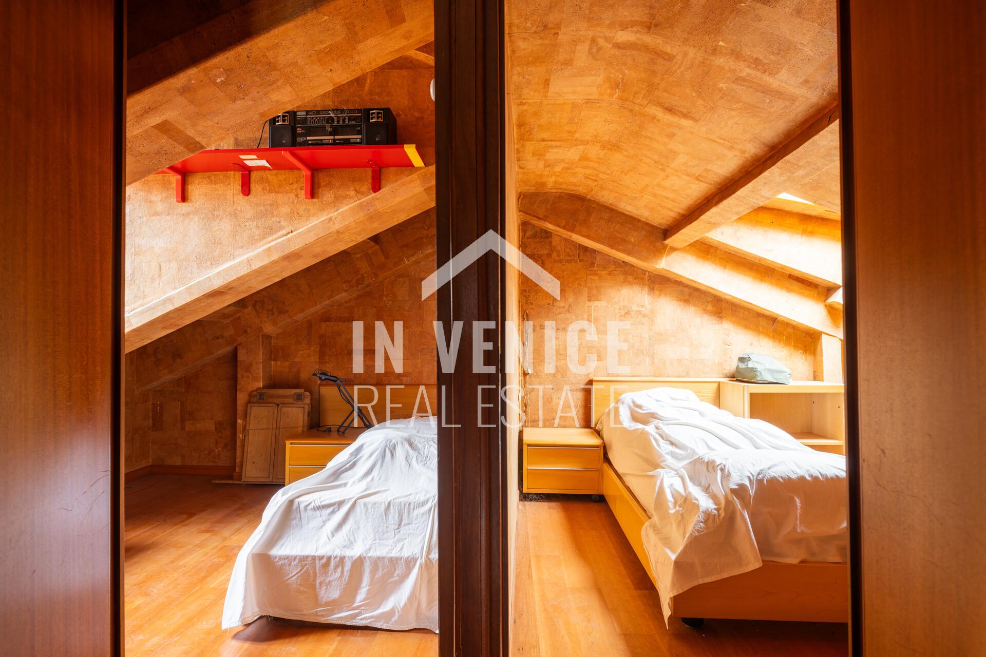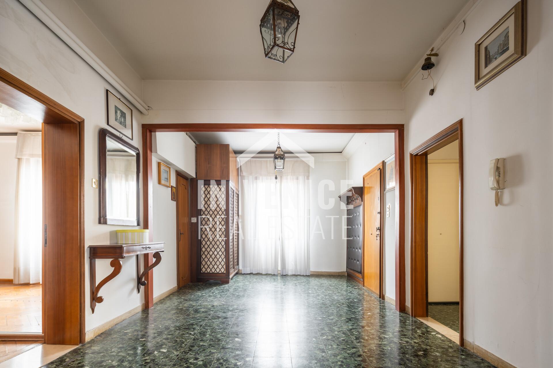 Proponiamo in esclusiva appartamento dietro Riva degli Schiavoni, appartamento su due livelli, all’ultimo piano ed unico al piano. La soluzione è un signorile appartamento dalle dimensioni generose, e con la particolarità di affacciare su quattro lati, che la rendono luminosa grazie alle numerose finestre. Entrando ci accoglie un ampia zona ingresso, che prosegue sulla sala da pranzo con cucina abitabile separata. Proseguendo troviamo una splendida zona living di 40 mq dov’è stato conservato il profilo in marmo d’epoca di un vecchio caminetto. Accanto al soggiorno si trova uno studio di 30 mq, soluzione ideale per unire i due ambienti. Al piano troviamo quattro camere, due bagni ed una lavanderia, mentre al piano sottotetto 3 camere ed un bagno. Completa questo appartamento un ALTANA(al momento da sistemare in quanto le assi in legno erano da sostituire), di 22 mq, dalla quale si può ammirare il Campanile di San Marco, i fuochi del Redentore, e tutti l’arte che lo circonda.